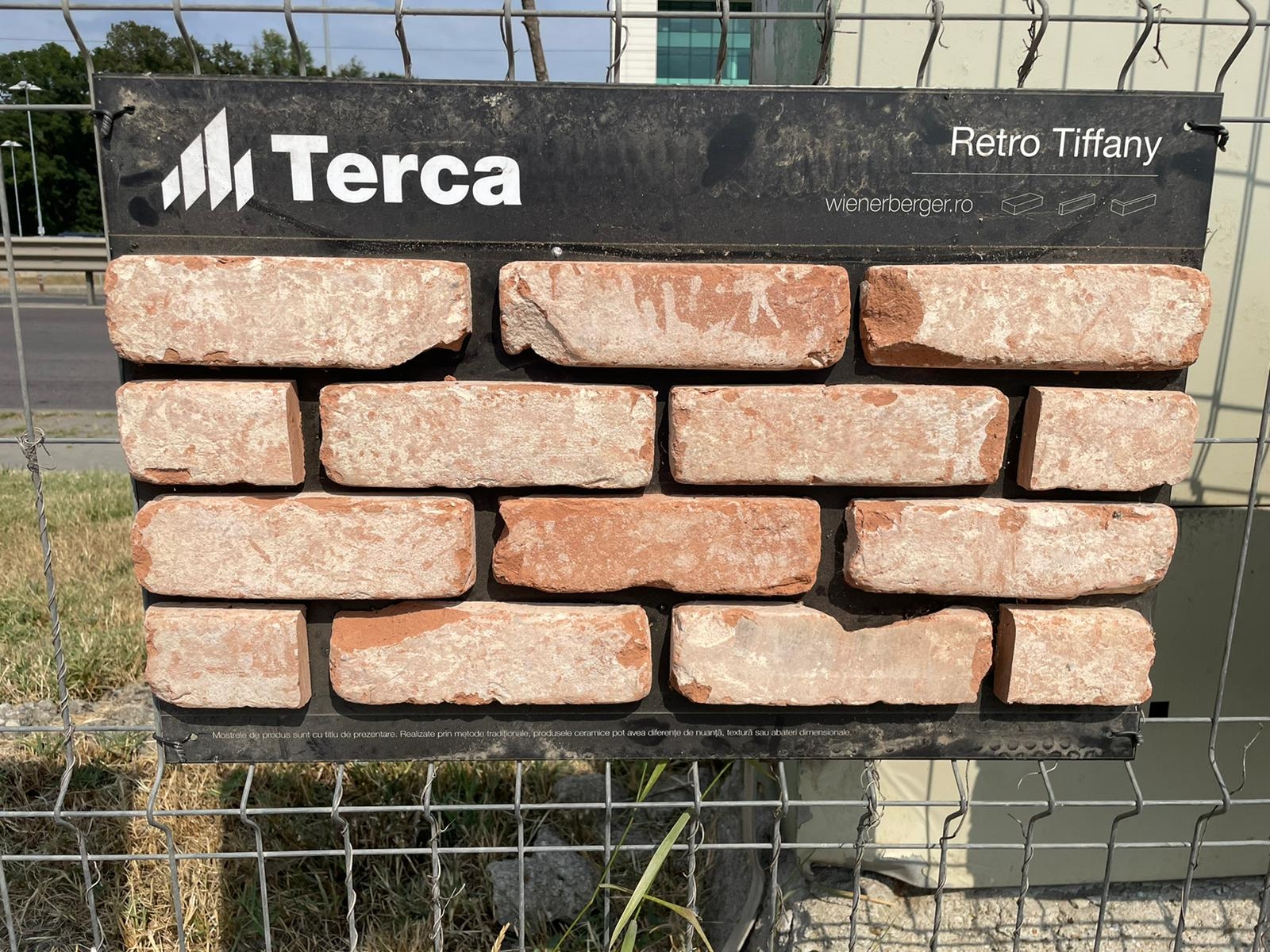 Caramida aparenta Terca Retro Tiffany se remarca prin culoarea caramizie, cu nuante de alb-rozaliu, alb-galbui si albastru-gri. Suprafata este structurata si prezinta urme de ciment alb-rozaliu pe caramizile rosiatice si gri pe cele galbene.