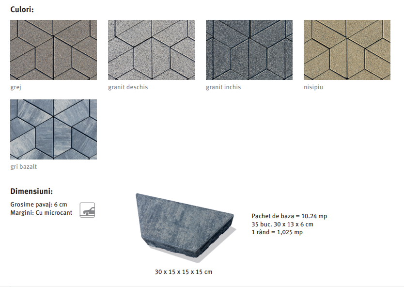 Pavajul Vitralio este disponibil în 5 culori si 2 tipuri de texturi si se remarca prin rezistenta sporita a culorilor si suprafetelor datorita prezentei agentului de hidrofobizare Semmelrock Protect, care previne patrunderea apei in structura pavajului.