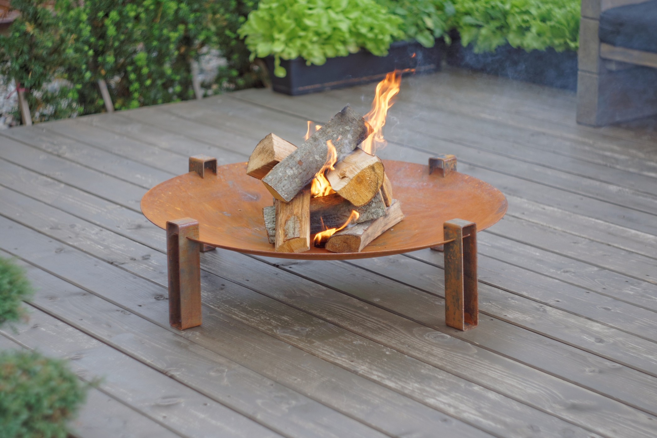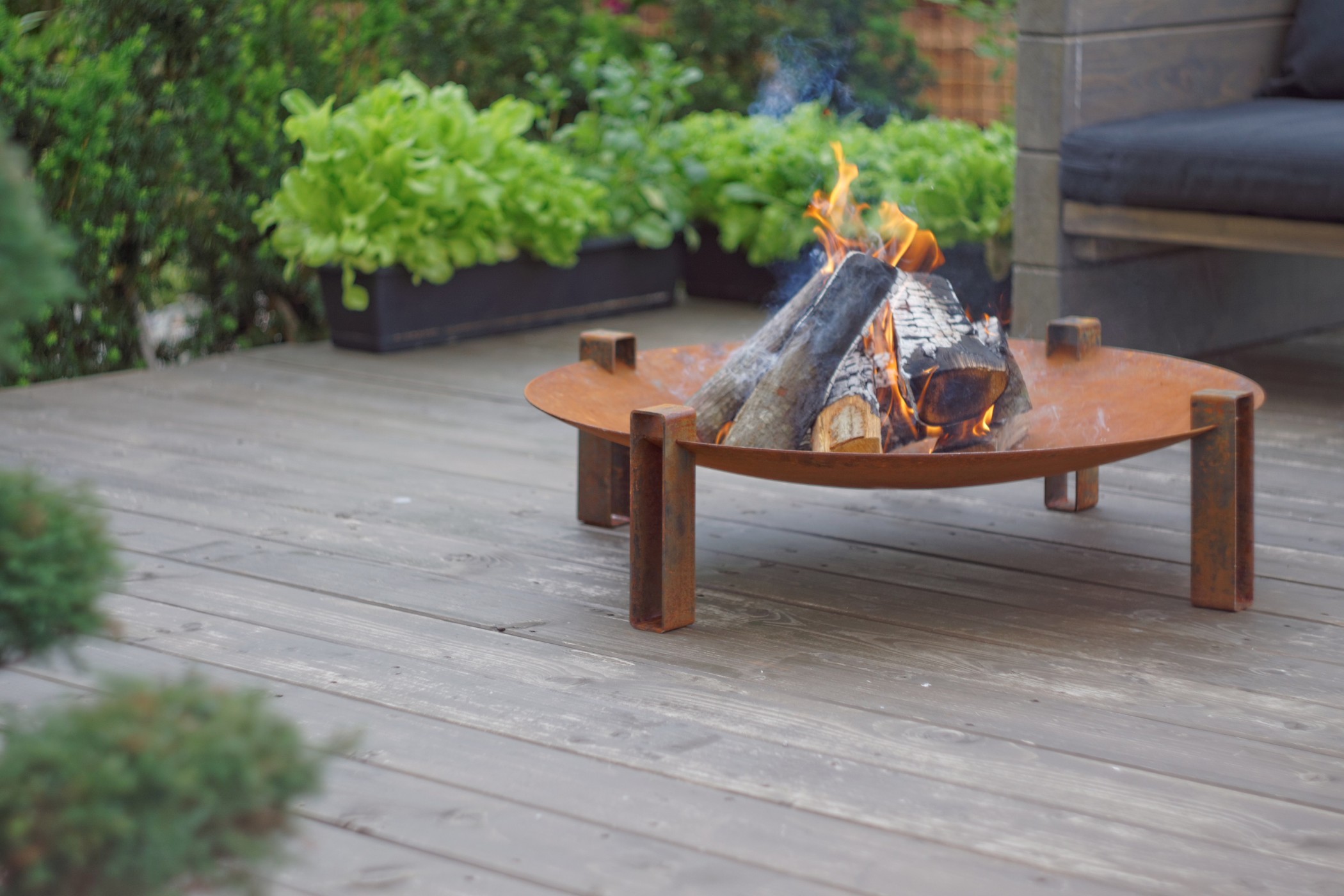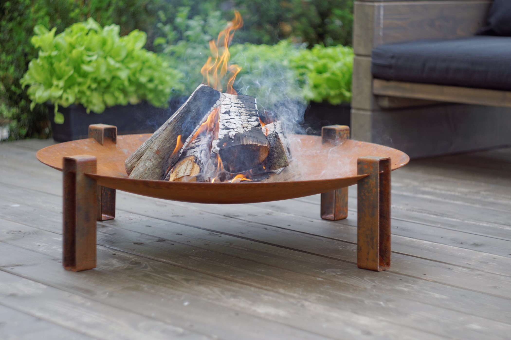 Datorita aspectului sau modern minimalist, modelul de fire pit Alna se va incadra perfect in gradina sau pe terasa dumneavoastra, adaugand o nota de caldura si eleganta in acelasi timp. Acest fire pit este produs din otel carbon masiv de cea mai buna calitate, foarte rezistent si care, in timp, capata o patina foarte placuta. Astfel, dumneavoastra va veti putea bucura de atmosfera speciala creata de fire pit-ul Alna multi ani la rand alaturi de cei dragi. La livrare, produsul prezinta un aspect lucios. Aspectul de rugina apare in decurs de cateva saptamani in urma contactului cu umezeala. Daca doriti sa grabiti procesul de ruginire, puteti scufunda fire pit-ul in apa sarata.