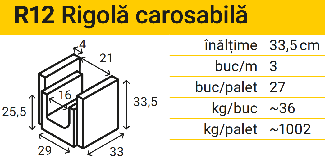 Rigola Carosabila R12 33x29x33.5 cm, Gri Ciment